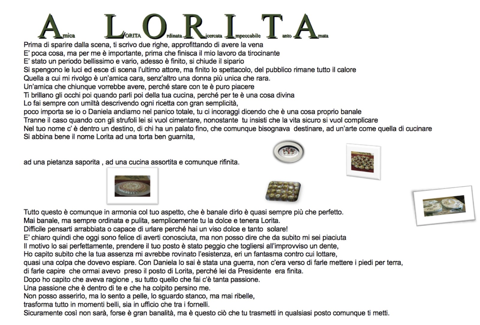 Di Rosa ho già parlato qualche post addietro, vi ricordate "il natale di Rosa"? si proprio lei che sa scrivere così bene in rima! Bè la mia cara amica mi ha voluto dedicare uno scritto bellissimo, che mi fa sentire importante.